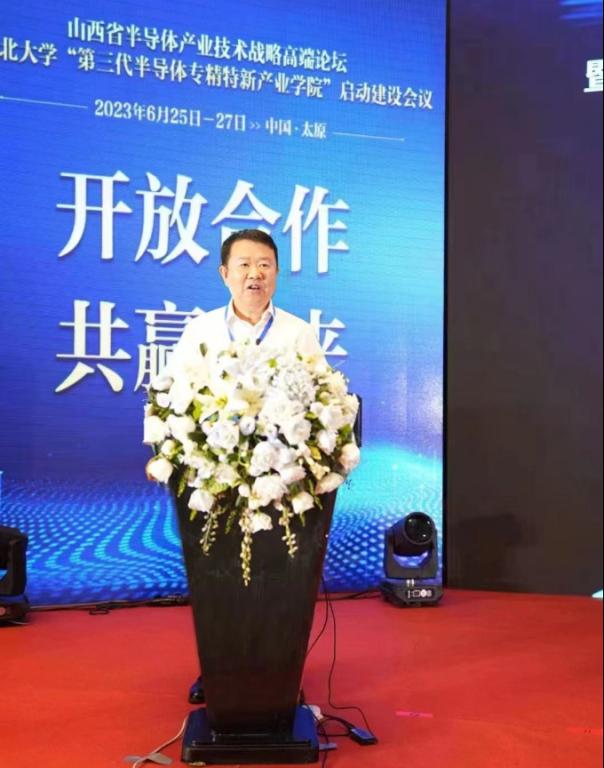 中北大学党委书记沈兴全出席大会开幕式并致辞。沈兴全在致辞中表示,会议的召开是学校高质量发展过程中的一件大事、一件喜事,也是学校深入实施创新驱动战略、创新产学研合作模式的一次有益探索,更是服务山西经济社会高质量发展的一次难得机遇。他强调,学校半导体专精特新产业学院的成立,是落实国家科教兴国、人才强国、创新驱动战略部署的有力举措,标志着我校围绕第三代半导体专业建设又翻开了崭新的一页。