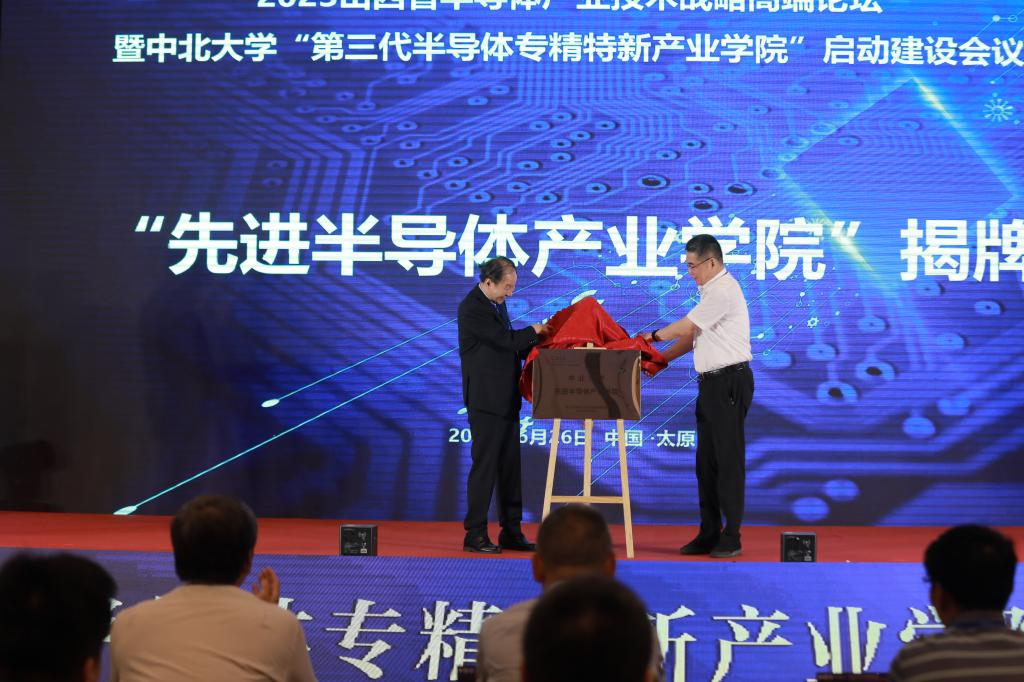 第三代半导体产业技术创新战略联盟副理事长兼秘书长杨富华与我校半导体与物理学院院长李晋闽共同为“先进半导体产业学院”揭牌。