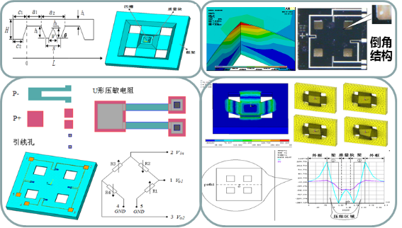 (1)设计、封装了量程15万g、抗过载20万g的MEMS高量程加速度传感器。发明了独特的梁-岛-塔形结构,有效的保障了测量精度和量程;提出了倒角应力释放结构,保障了高量程下的器件存活能力;开发了MEMS批量化制造工艺技术,实现器件低成本加工生产;生产了6英寸圆片大批量芯片。提出了应力匹配封装工艺,降低封装结构残余应力;开发了封装金属管壳结构和工艺;研发了批量MEMS高量程传感器集成制造方法。